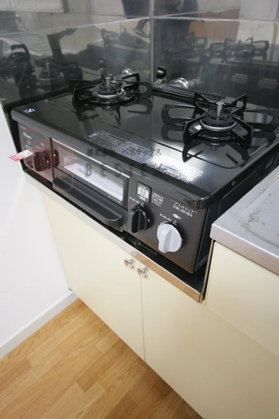 約5帖のDKは2口ガスキッチンが備わったキッチンがあり、2口のコンロは料理の際に大変役立つでしょう。