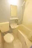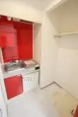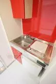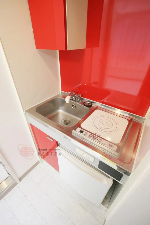 水周りは全体的に省スペースとなっていて、一口IHキッチンを搭載したミニキッチン。バス・トイレも3点式ユニットバスになっています。