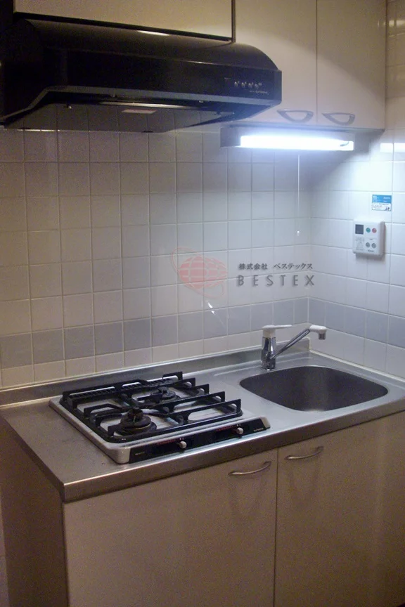 キッチンは2口ガスコンロが備わったシステムキッチンになっており、