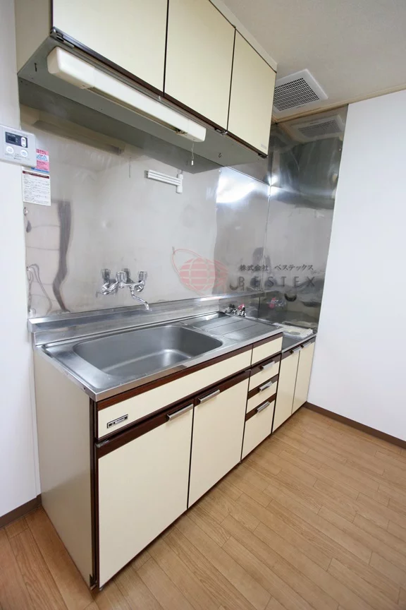 ダイニングキッチンは約5帖の広さが有り、ガスコンロを設置可能、