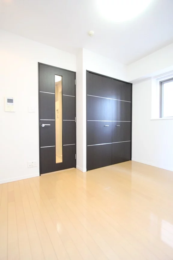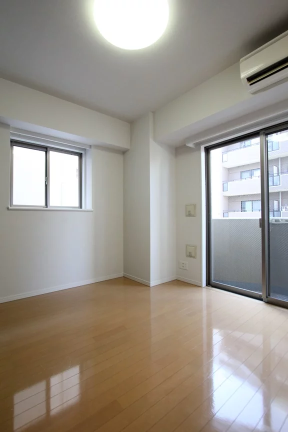 約6.3帖の居室は、2面採光の角部屋☆光沢が有り高級感のあるオールフローリング仕様です。家具配置がイメージしやすいシンプルな間取りなのも嬉しいポイント!
