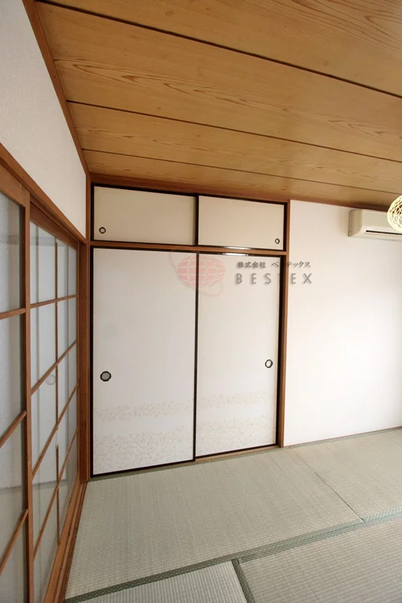 居室は落ち着きと温かみのある和室で、収納スペースは和室ならではの押入れを完備しておりますのでたっぷり収納頂けます!