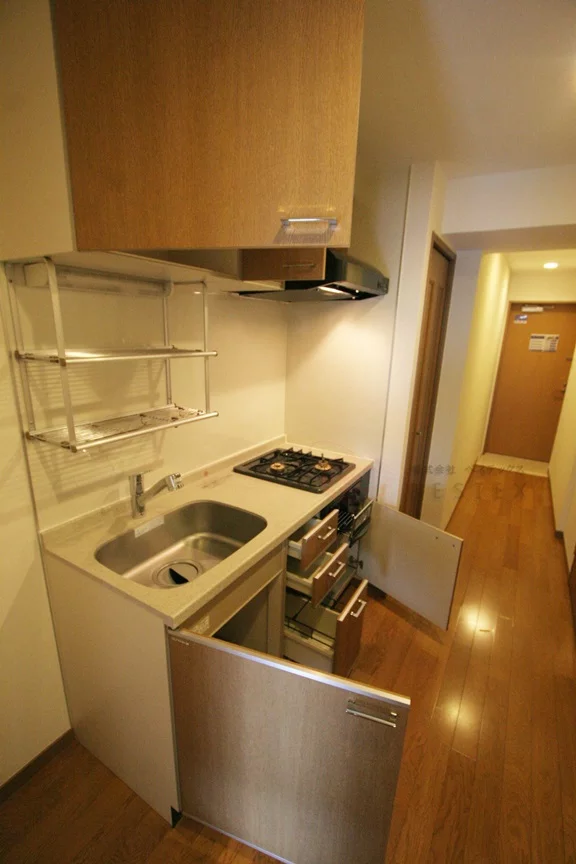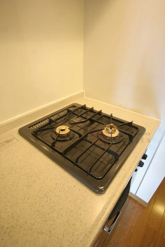 キッチンは2口ガスシステムキッチンで、調理スペースやシンクは大きめのものを完備!収納スペースも多めに取られているので、食器棚と併せて活用することで物を問題無く収納可能♪