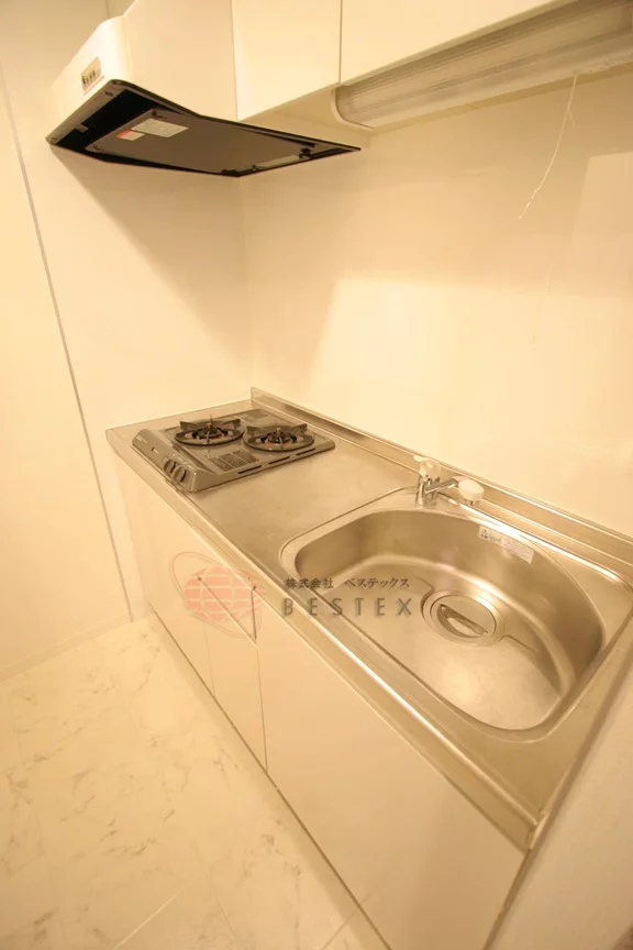 おしゃれな浴室と2口ガスコロンが付いたキッチンを完備。