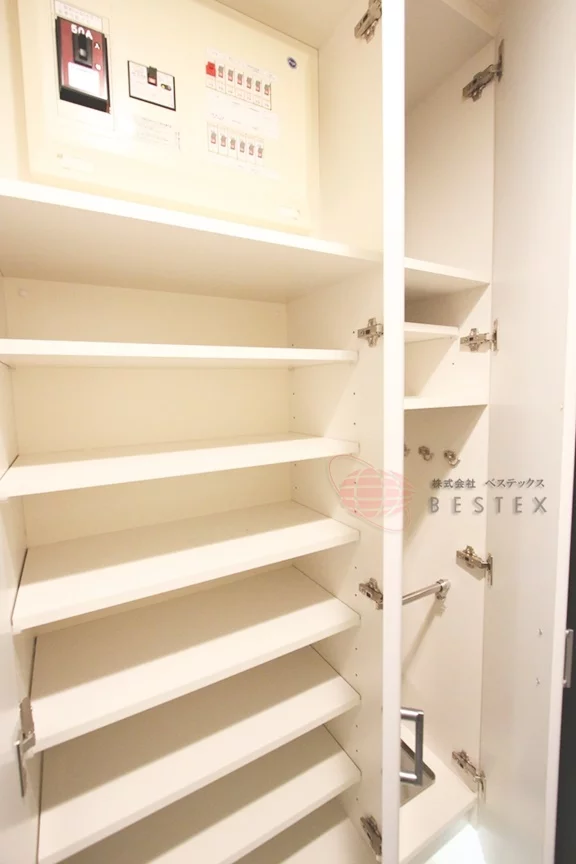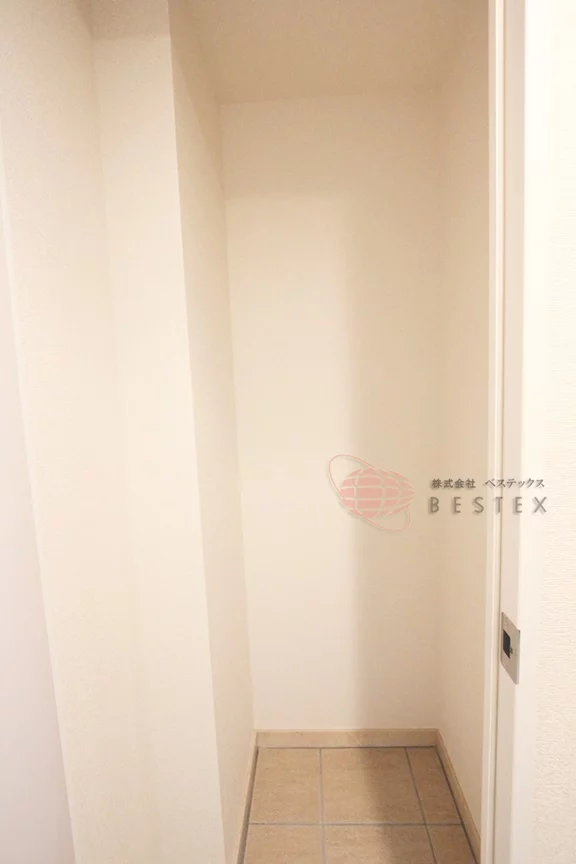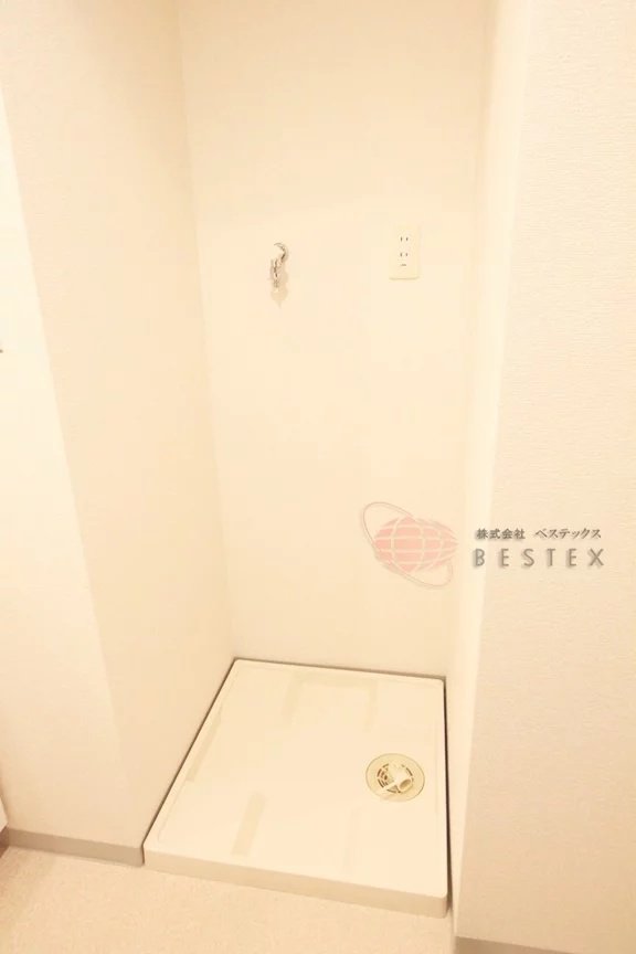 室内洗濯機置き場は扉が付いており、来客時には隠すことが出来るようになっております。