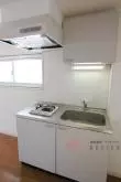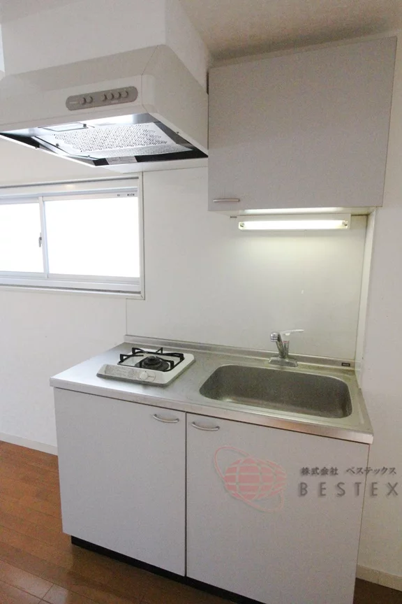 キッチンはガス1口コンロ完備のシステムキッチン。