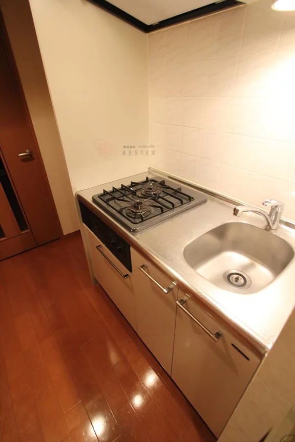 ⓷キッチンにはコンロ2口を完備、自炊をする方は必見です!