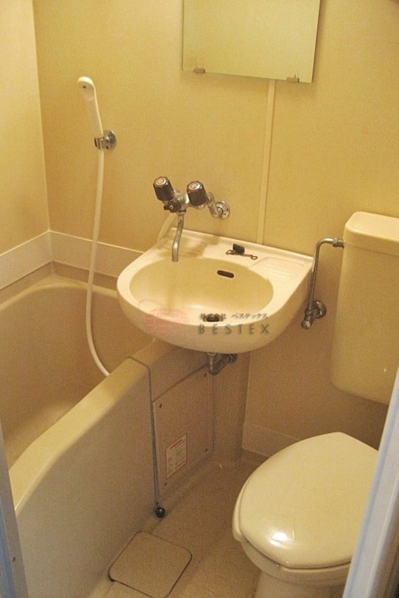 浴室は、バス・トイレが一緒になっており、洗面台もついた3点ユニットです。