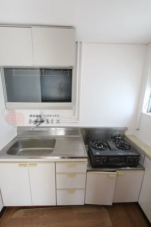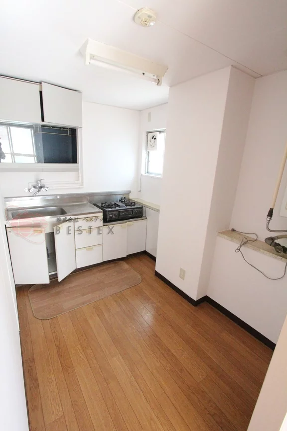 エアコン、ガスキッチン、室内洗濯機置場、収納完備!