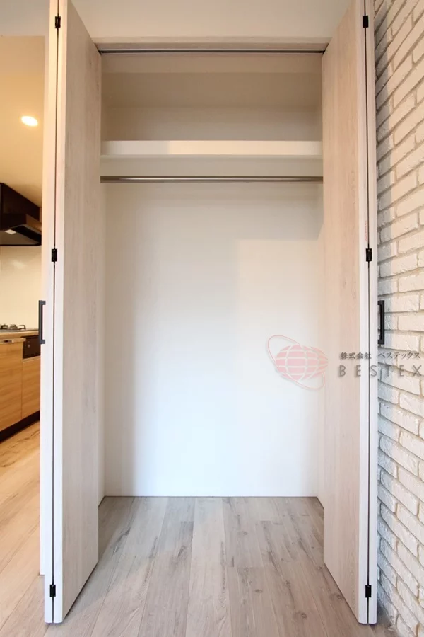 クローゼットはお部屋の広さを邪魔しない配置ですので無駄なくスペースを利用可能♪