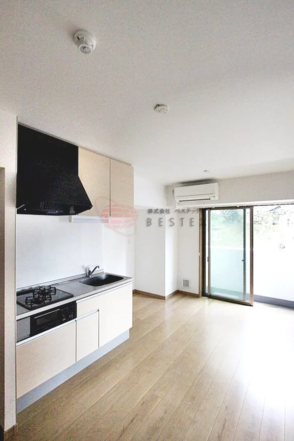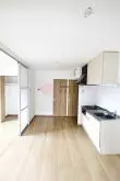 リビングダイニングキッチンは約9.5帖の広さがあり、キッチンとリビングの間に壁もありませんのでゆとりを持って調理可能ですし、調理して直ぐにテーブルに運ぶことも可能です♪