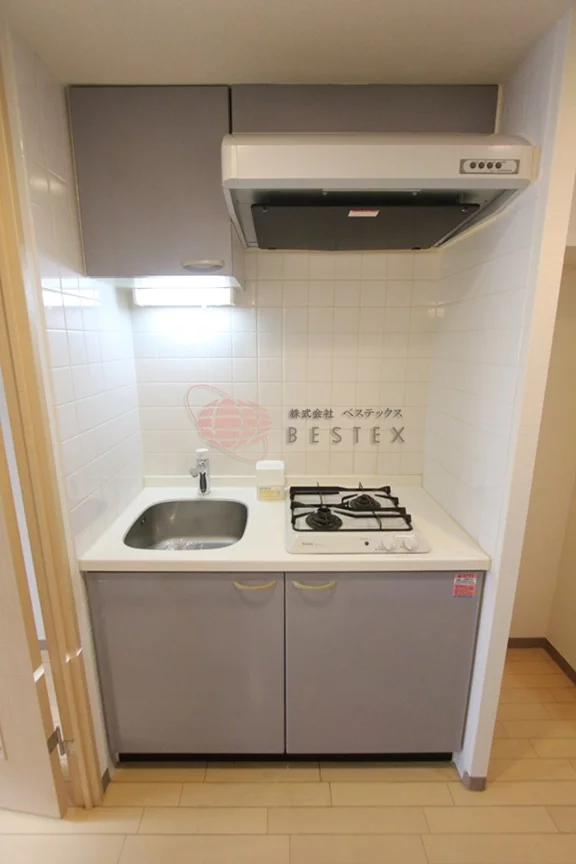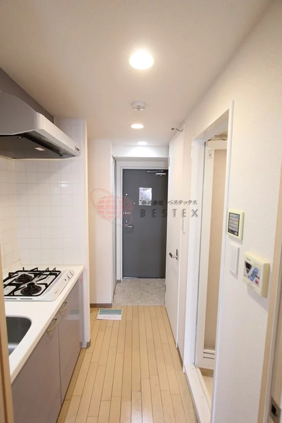 キッチンは2口ガスキッチンが付いており、居室とは扉で完全に分かれているため、調理時の臭いが居室に残ることもありません。