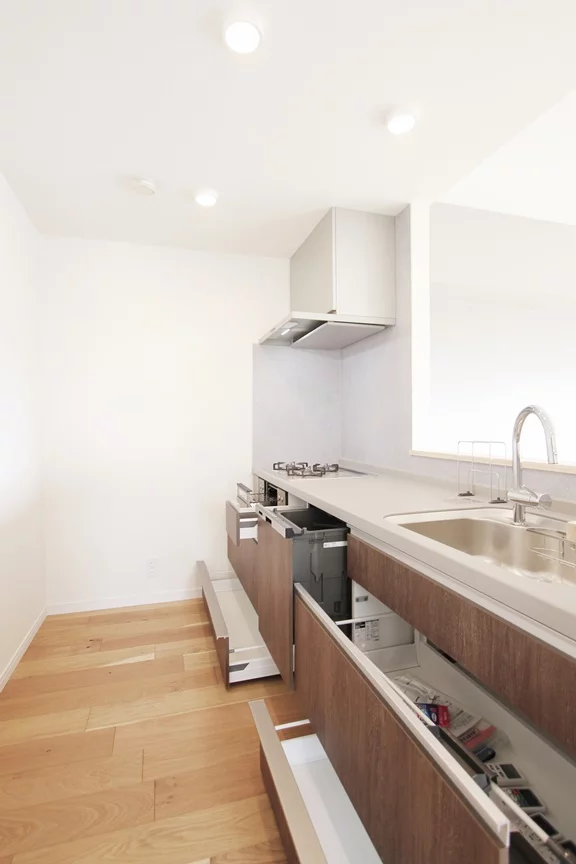 リビングダイニングのご家族とお話しながらお料理が可能で、小さいお子様がいらっしゃる方でも目を離さずに料理ができます♪