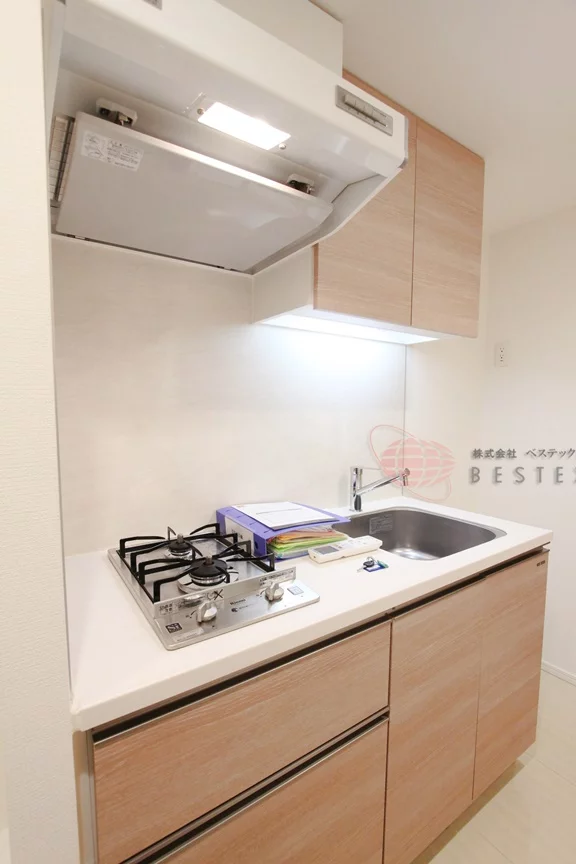 キッチンには2口ガスコンロが備え付けられたシステムキッチンを採用しているので