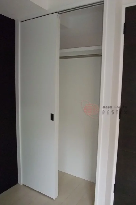 クローゼットが広めに確保されており、扉が引き戸ではなくスライド式となるため、スペースをより効果的に使えます♪
