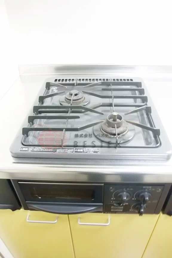 キッチンは2口のシステムガスシステムキッチンで調理スペースもばっちりあります!