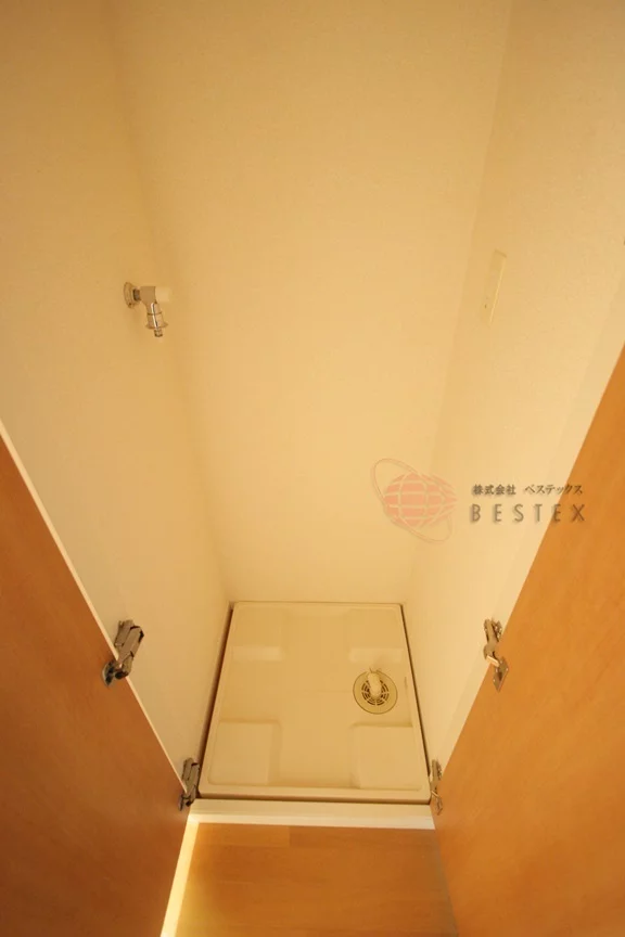 室内洗濯機置き場は扉が付いており、来客時には隠すことが出来るようになっております。