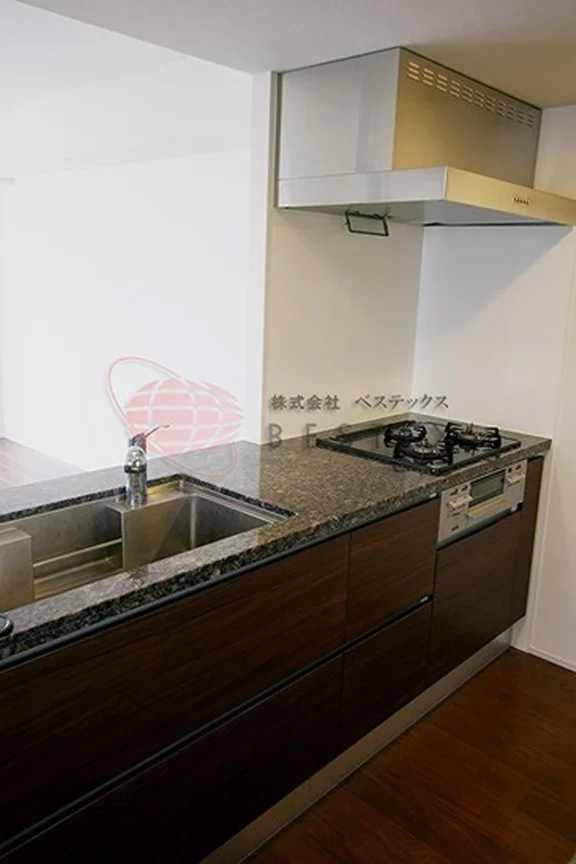 キッチン設備は3口ガスコンロが備わったシステムキッチンがあり、