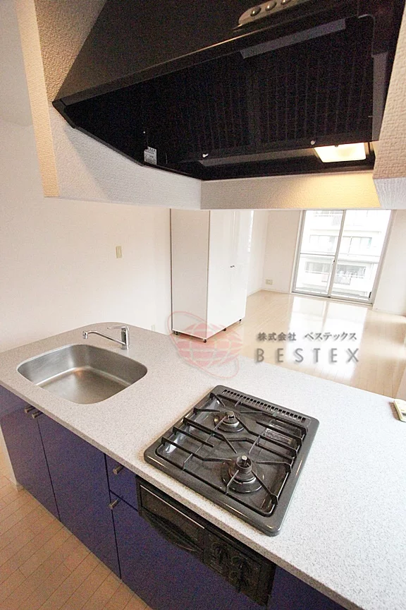2口ガスコンロが備わったシステムキッチンなので、