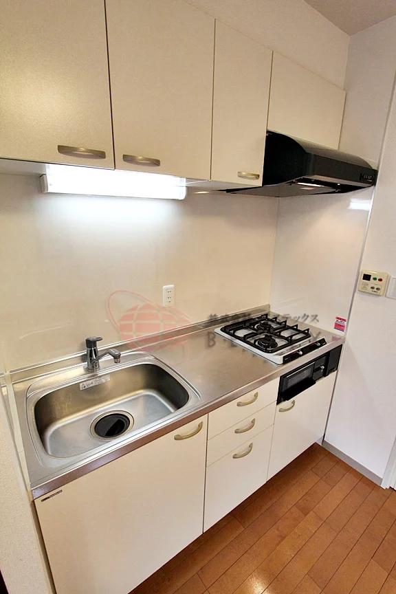 キッチンは、システムキッチンで、ガスコンロが二口備わっております!
