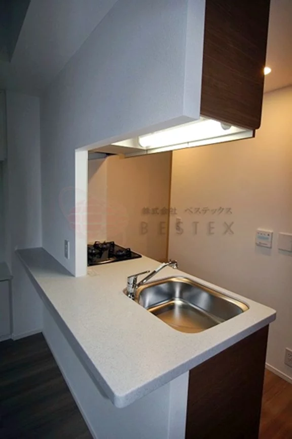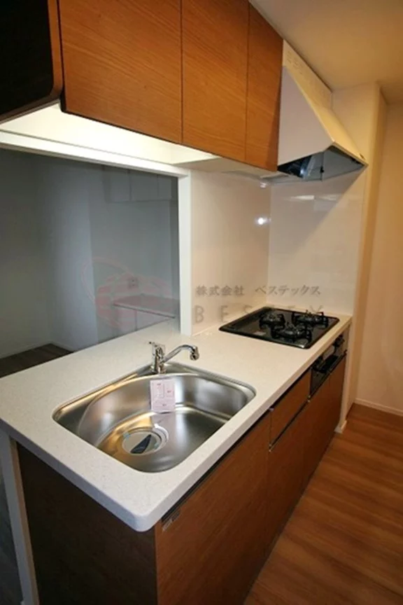 約10.3帖のLDKにはグリル付ガス3口システムキッチンがあり、料理をするには十分なスペースがあるので快適に作業を行えます。