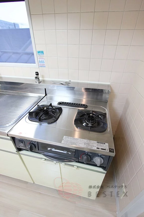 また、キッチンには2口のガスコンロが付いております。