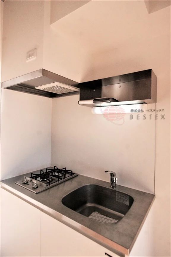 キッチンは2口のシステムガスキッチンで、スタイリッシュでお洒落なタイプです。