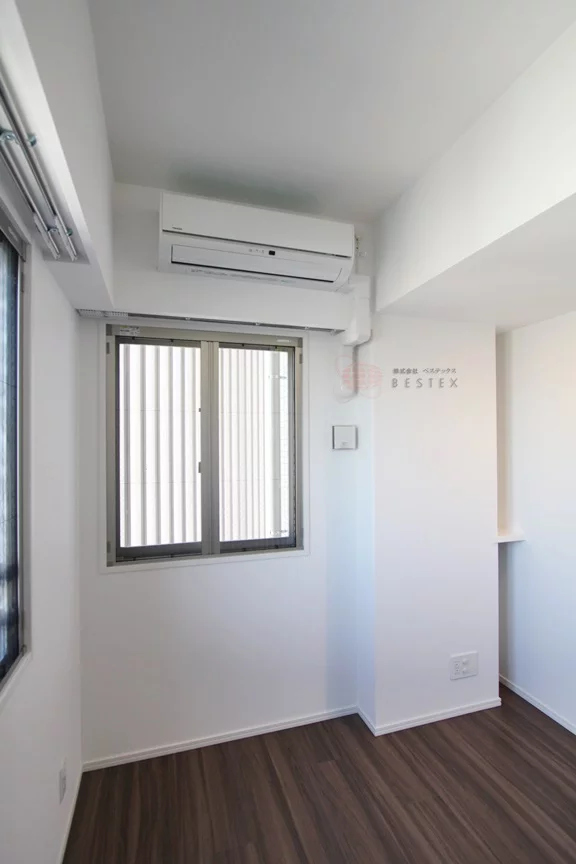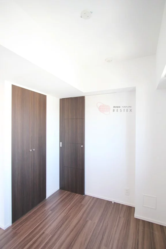 居室は約4帖の広さで、角部屋ならではの二面採光タイプ!明るさと通気性に優れえおります!クローゼットも完備しており、洗面台などがあるパウダールームとリビングの両方とつながっておりますので、自由な動線を確保しております。
