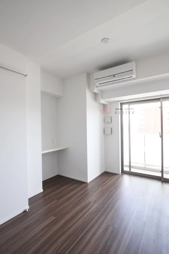 居室は約4帖の広さで、角部屋ならではの二面採光タイプ!明るさと通気性に優れえおります!クローゼットも完備しており、洗面台などがあるパウダールームとリビングの両方とつながっておりますので、自由な動線を確保しております。