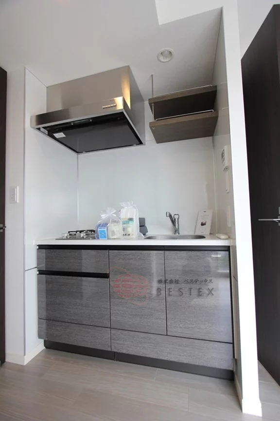 キッチンは二口ガスコンロが完備されたシステムキッチンとなっておりますので、不自由なくお料理をお楽しみ頂けます。