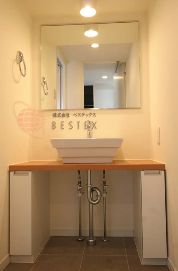 浴室の前には洗面所があり独立洗面台が備え付けてあるので、