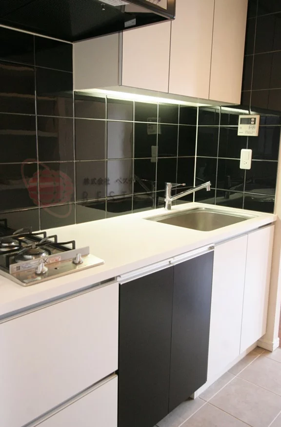キッチンには2口コンロが備え付けられたシステムキッチンを採用しているので、