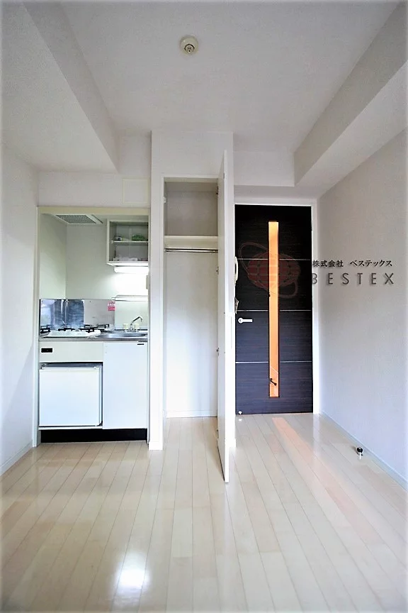 約6帖の居室は高級感が有り、お手入れもしやすいオールフローリング仕様で、梁や柱の少ない居室はベッドやテレビ台などの家具の配置をイメージしやすくて使い勝手良好、壁一面を使ったクローゼットを完備しております♪