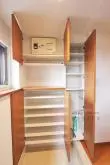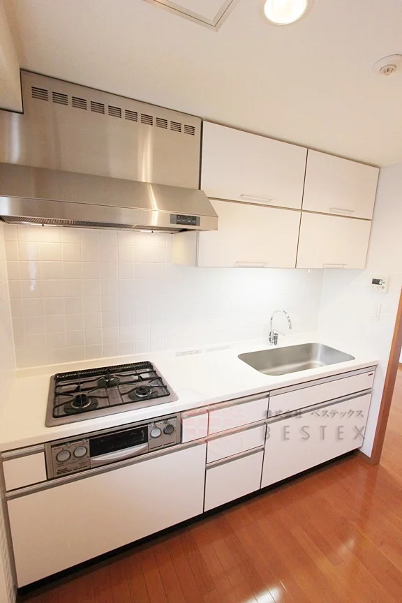 キッチンはリビングダイニングから独立した位置で、こちらも広々!冷蔵庫だけではなく食器棚を置く余裕もあり、キッチン自体の収納も豊富♪