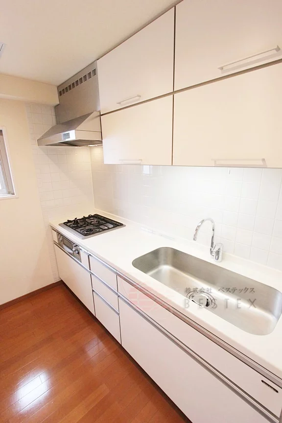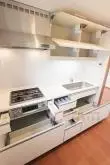 キッチンには3口ガスコンロが備わったシステムキッチンがあり、収納力もあるキッチンなので調理器具をたくさんお持ちの方でも安心してお使い頂けます。