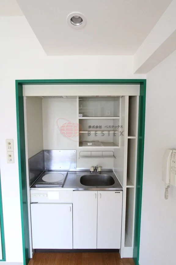 水周りは全体的に省スペースとなっていて、キッチンは一口IHキッチンとなります。