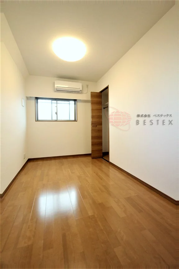 洋室は約5.08帖で、こちらも綺麗な形をしているのでベッドも置きやすくなっています。もちろん、クローゼットも完備!