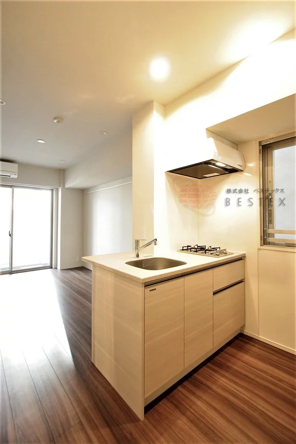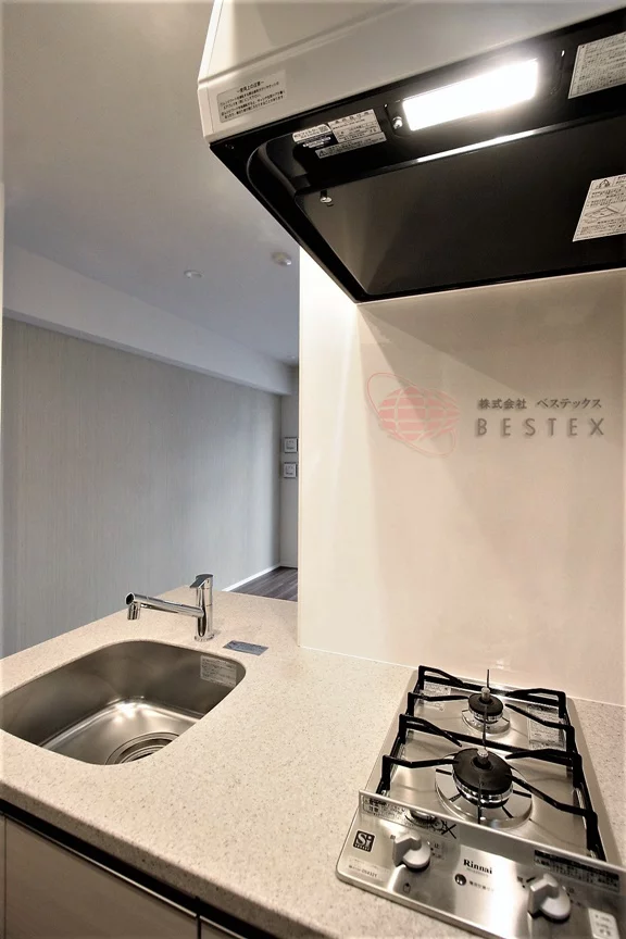 ②.キッチンは、二口コンロが完備された