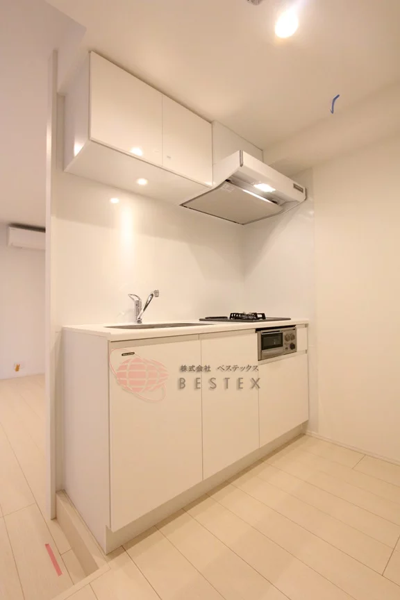 システムキッチンは収納も豊富!コンロはガス2口グリル付きなのでお料理も捗ります♪