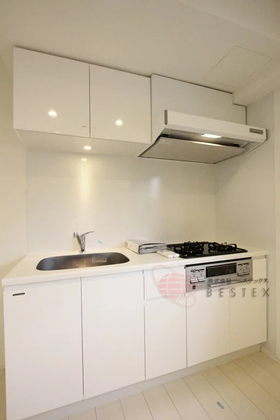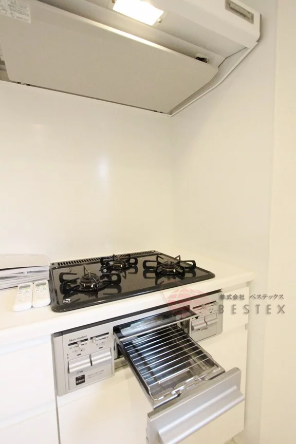 システムキッチンは収納も豊富!コンロはガス3口グリル付きなのでお料理も捗ります♪