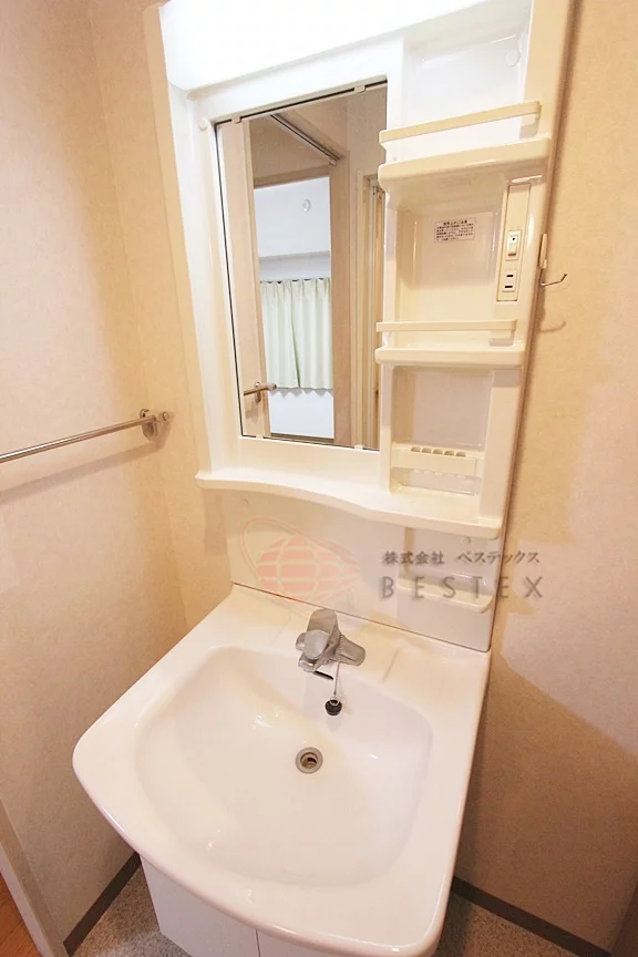 2、バストイレ別は勿論、独立洗面台完備で脱衣スペースもしっかり設けられている水回り設備です。