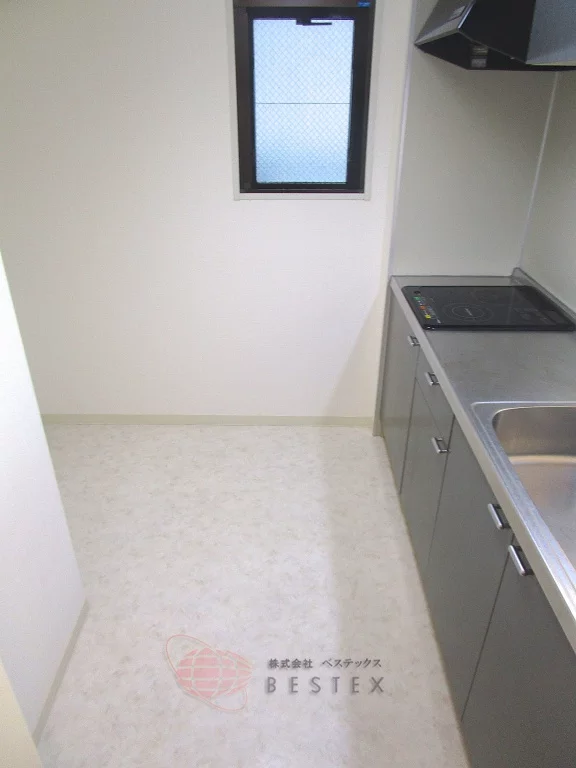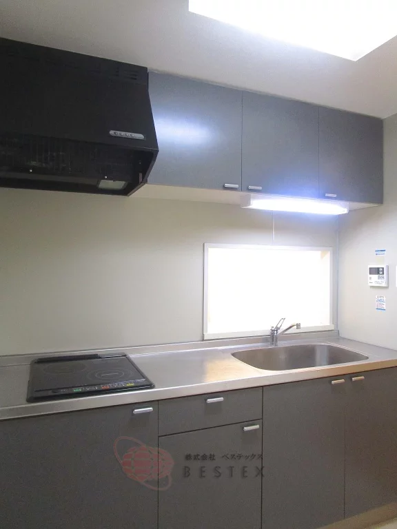 IH2口のシステムキッチンで、調理スペースも広く取られており使い勝手良好♪