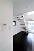 玄関から廊下・トイレ・脱衣所・キッチンに渡り、床はタイル貼りという仕様で、まさにデザイナーズといった印象!