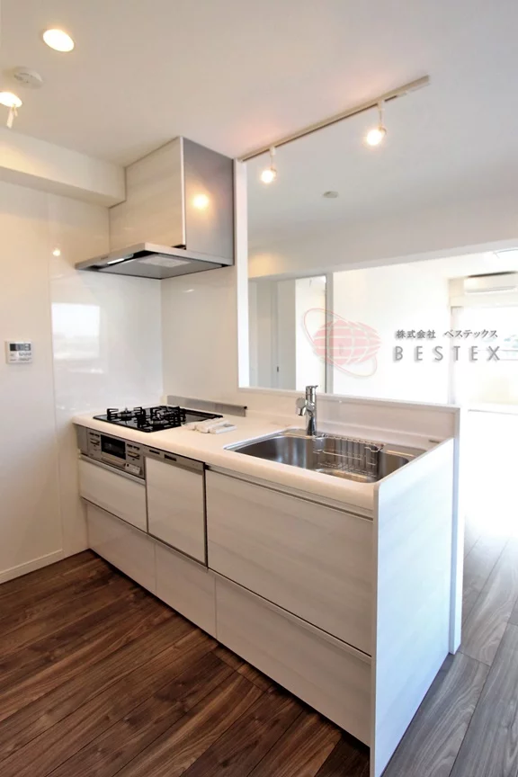 キッチンは人気のカウンターキッチンを採用!ガス3口グリル付きのシステムキッチンには食洗機も完備!毎日のお料理がはかどります♪