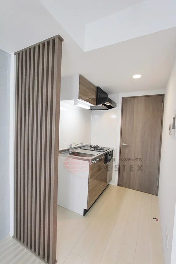 キッチンはガス2口コンロが完備されたシステムキッチンとなっております。