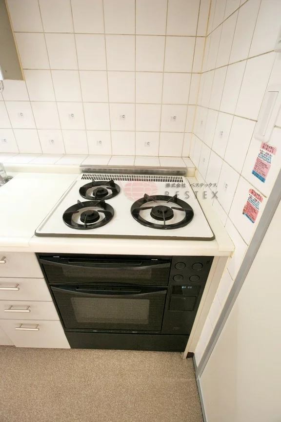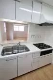 キッチンはガス3口のシステムキッチンで、広いキッチンはお料理も楽々♪