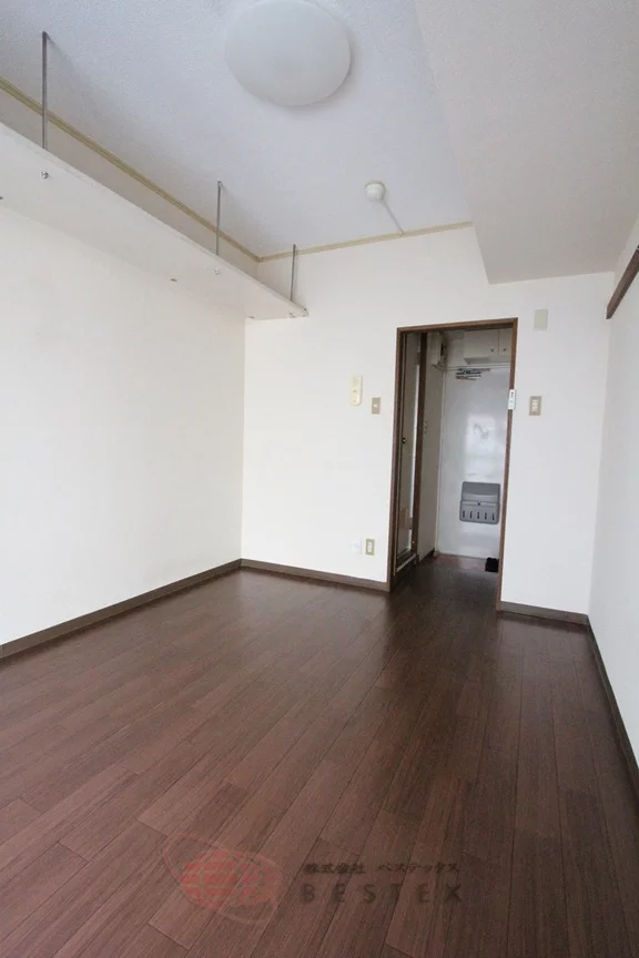 お部屋の上部に棚が御座いますので収納力も抜群です。