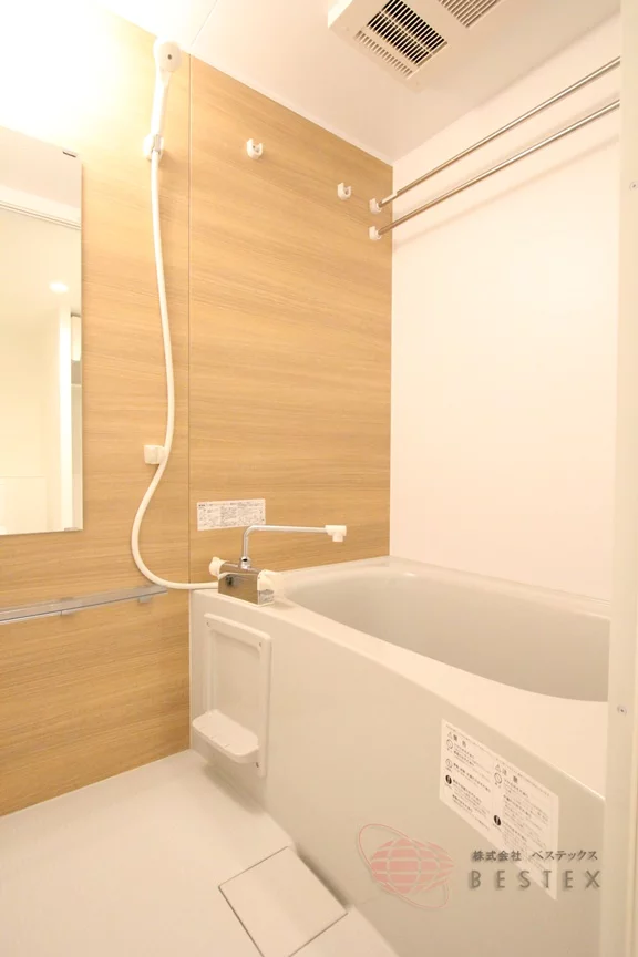 お風呂には浴室乾燥機、脱衣所には独立洗面台、トイレにはウォシュレットという内容。