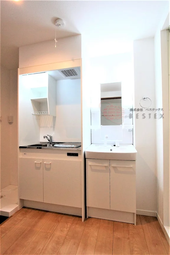 その先にはキッチンスペースがあり、その中には人気設備の独立洗面台も完備されています♪