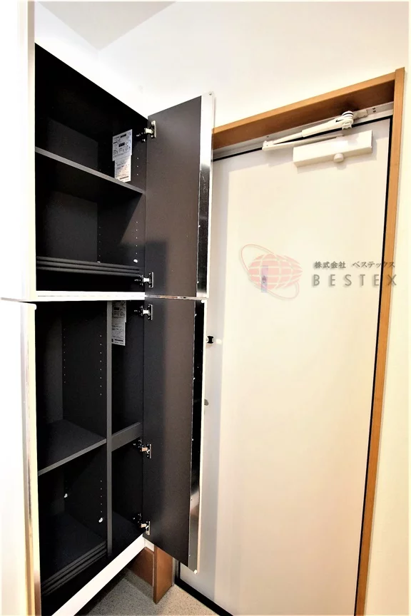 玄関を入ってすぐ、右手に下足入れ、左手には室内洗濯機置き場が御座います。